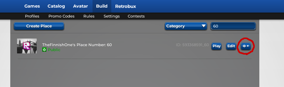 Before you can use the kit, you need to create a game where you can build a tower. After creating the game, open it’s settings from the cogwheel button.