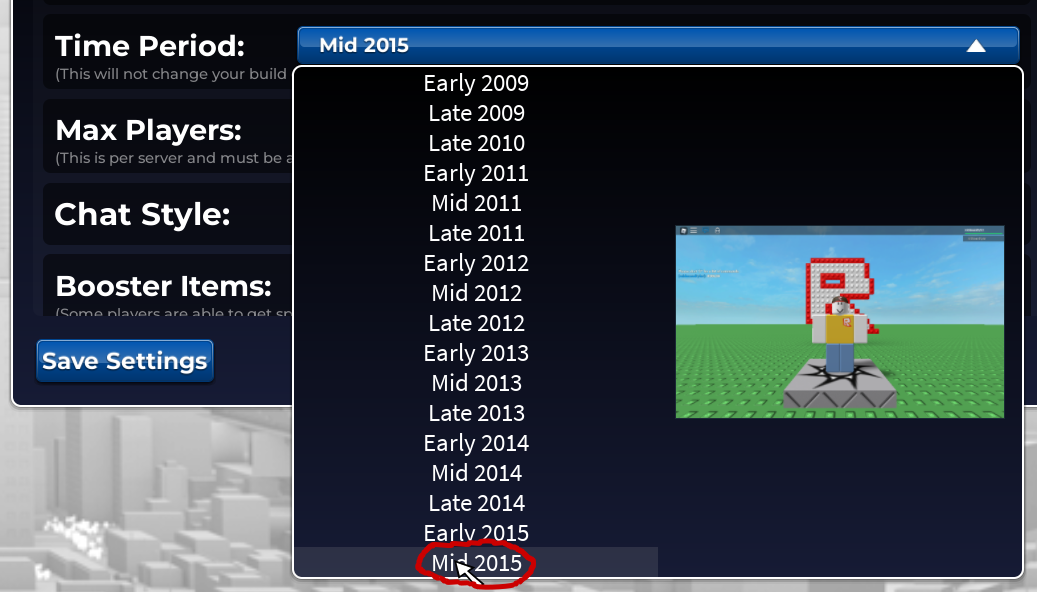 Scroll down until you find the “Time Period” option. Click the Dropdown menu, and select “Mid 2015” from the list. Any older time periods will have different physics, and the kit is not designed to work with them.